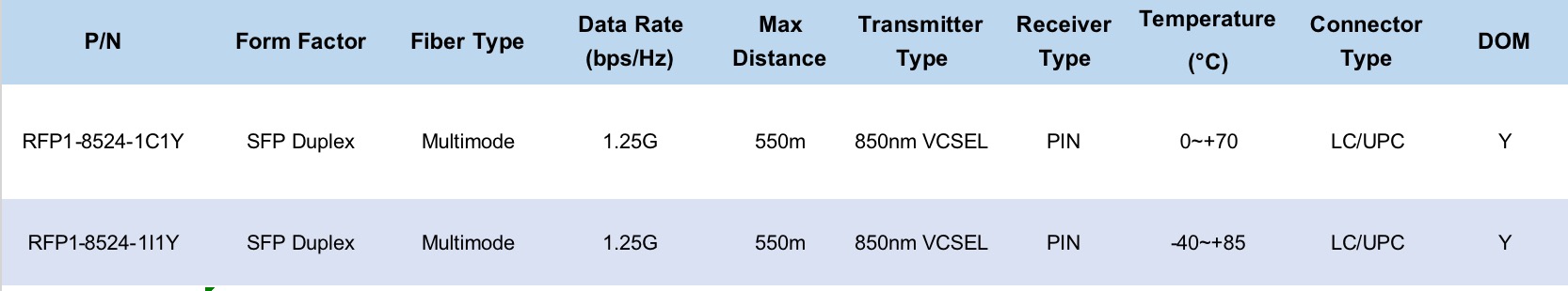 REON SFP module include SX,FX,LX,EX,ZX and BX series.They use LC and SC receptacles.They are compliant with the SFF-8472,SFP MSA,OC-3/STM-1&OC-12/STM-4&OC-48/STM-16,100BASE and 1000BASE IEEE 802.3z.